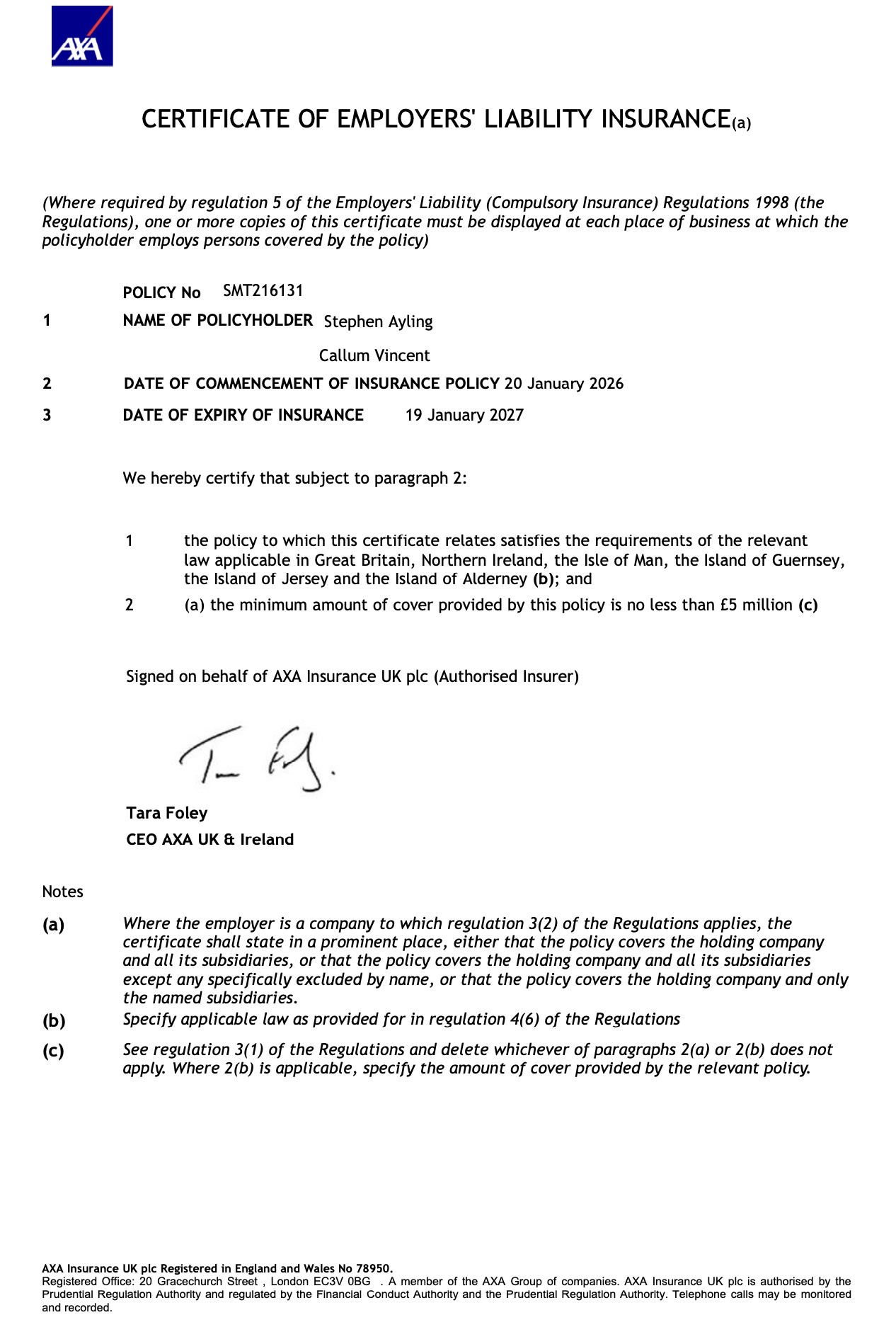 here you can view or download a copy of our Employers Liability Insurance Certificate (£5-10m)
